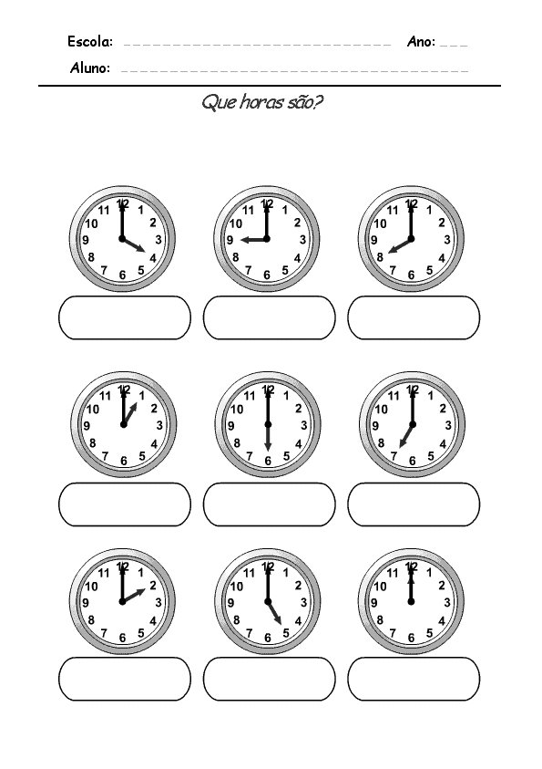 O ponteiro grande marca os minutos que são contados de 0 a 60, porque a hora tem 60 minutos.